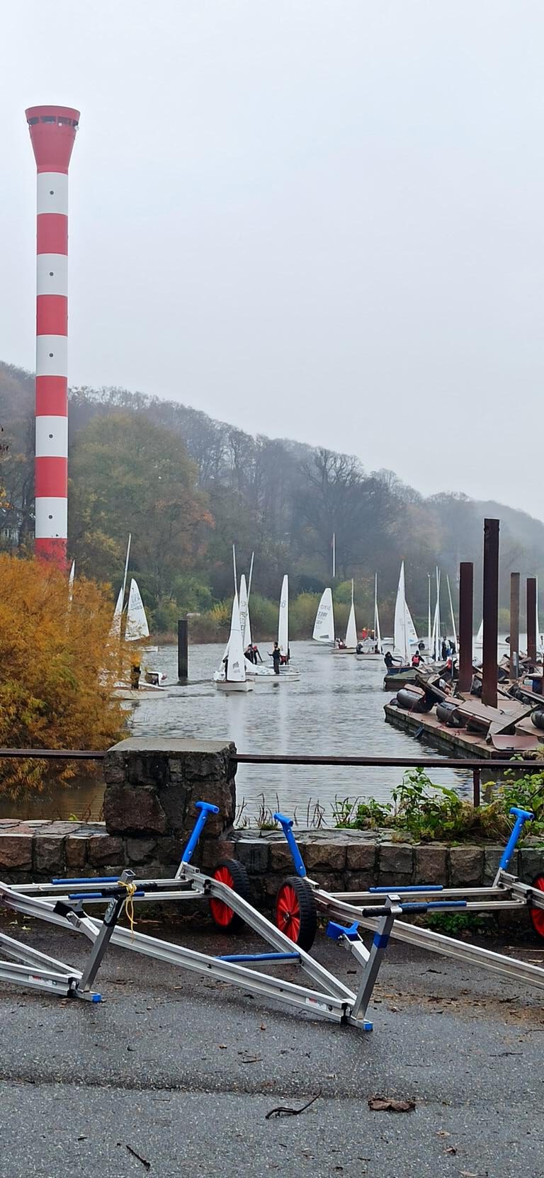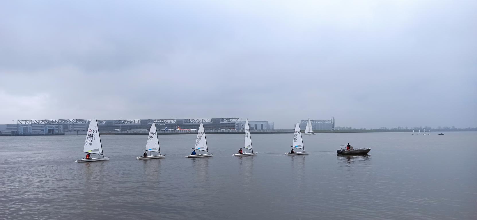Für reichlich Aufregung sorgte die EBBE bzw. die FLUT, die weniger erfahrenen Segler kamen mit dieser Situation schlecht klar. Dafür waren wie eben schon erwähnt die Sicherungsboote ins Spiel, um die „Abtrünnigen“ an den Hacken zu nehmen um sie sicher in den Hafen oder zum Start zu geleiten.