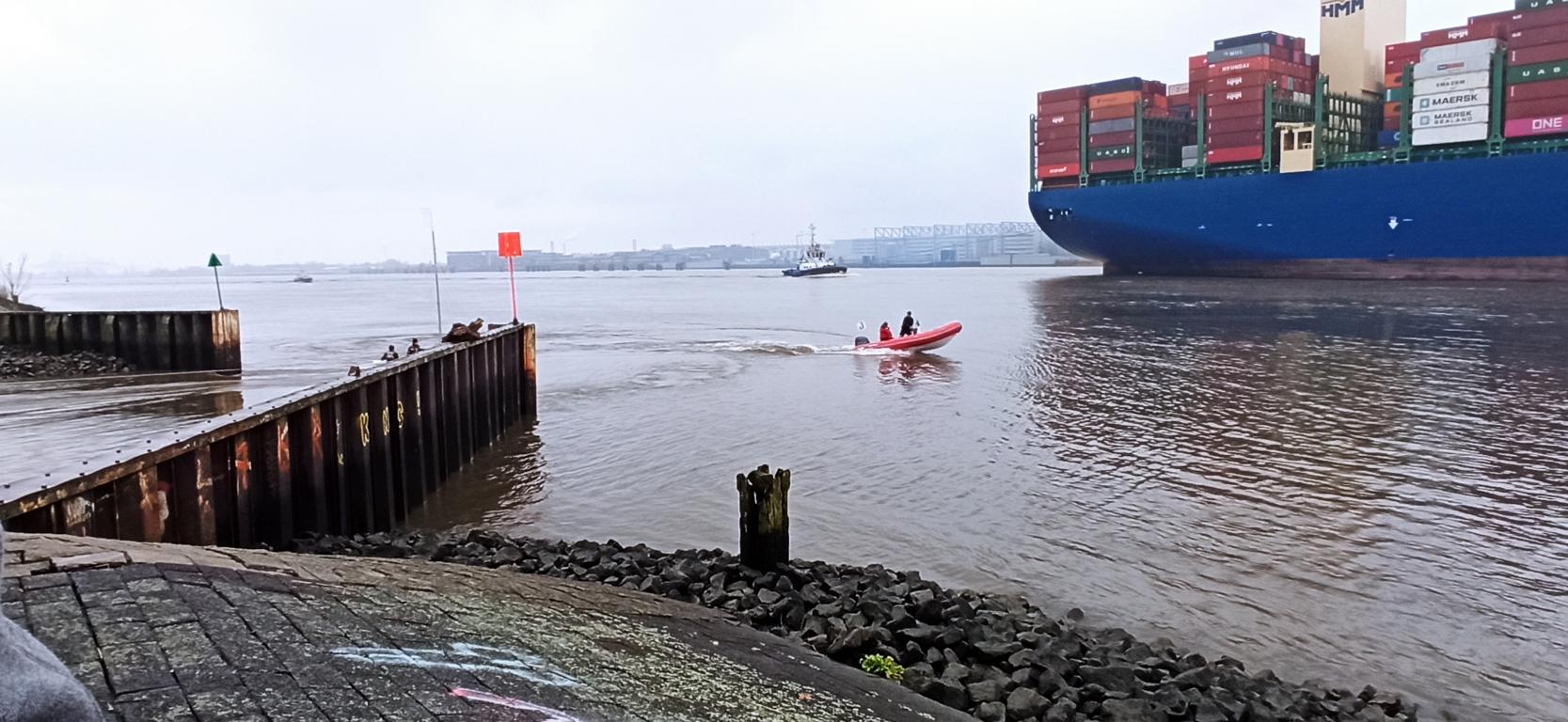 Aber hier unten auf der Elbe sieht man die Riesenpötte, die, die Elbe befahren. Vorsicht ist geboten den die haben immer die Vorfahrt, egal wer da unten im Wasser herumdümpelt. Hier fand die Aero Regatta statt, für die Sicherheit der kleinen Jollen wurde mit viel Aufwand betrieben. Um die kleinen Jollen sicher ins Regattagebiet zu bringen, wurden sie meistens ins Regattagebiet geschleppt.